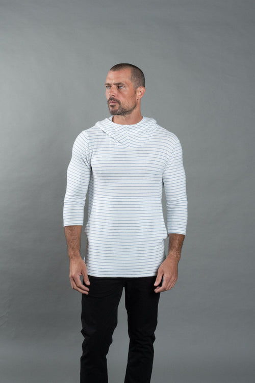Men's Pullover Sweater - White & Navy Thin Stripe -